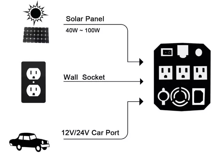 作为AC / DC 12 v / 220 v / 5 v输出,它适用于不同的设备,例如手机,平板电脑,笔记本电脑,小型打印机,各种灯具,小型鱼缸加热器,照相设备,
