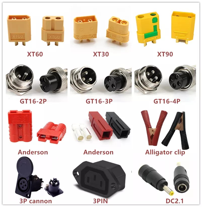 2.放电接头:有12种可选,如下图,如无要求,可提供裸线或焊接默认接头。